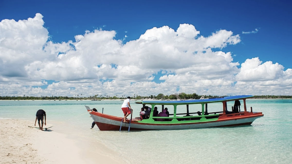 Aktivitas island hopping ke Pulau Pasir menjadi bagian dari paket wisata Belitung yang menawarkan pengalaman liburan praktis tanpa ribet. (Foto: Yudiansyah)