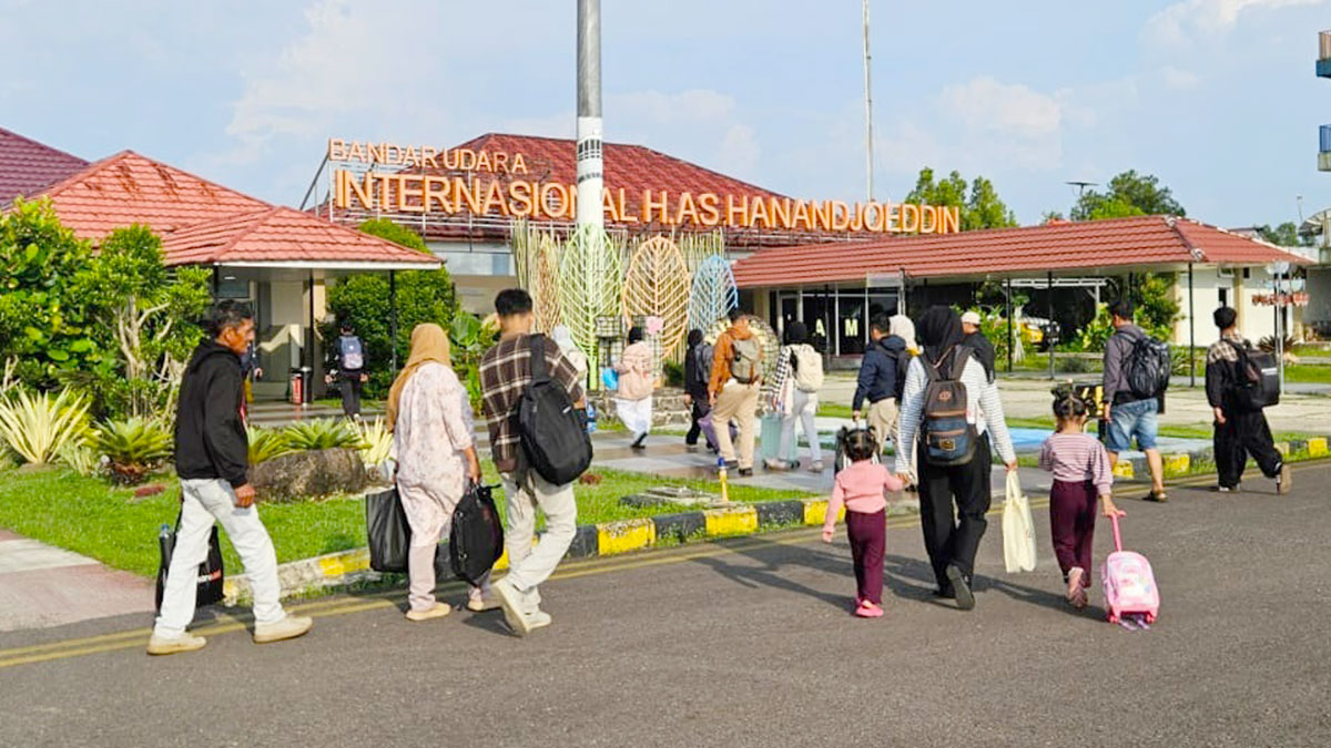Suasana penumpang tiba di Bandara H.AS Hanandjoeddin, Belitung jelang dibukanya rute Singapura–Tanjungpandan. (Foto: Yudiansyah)